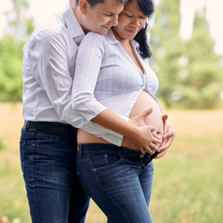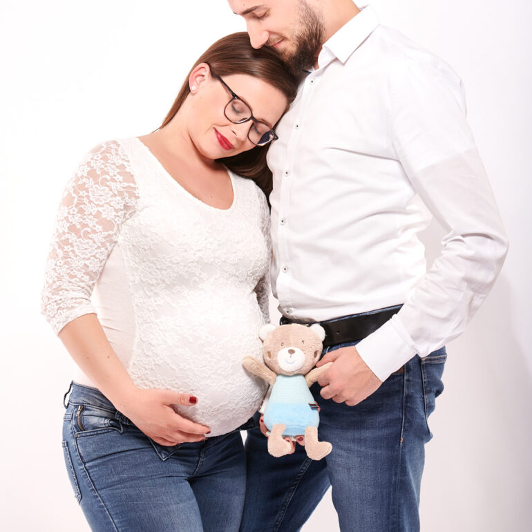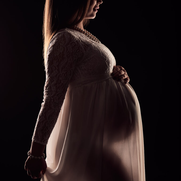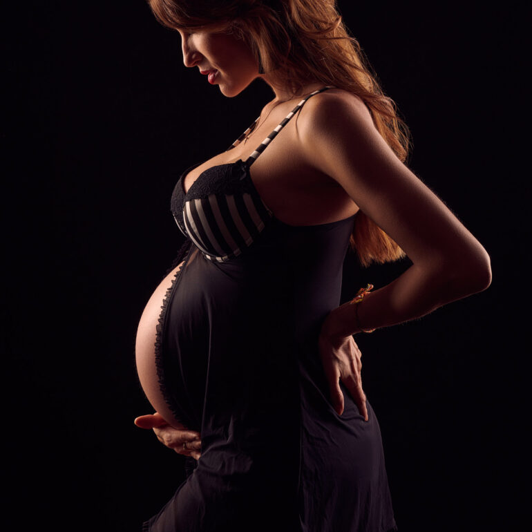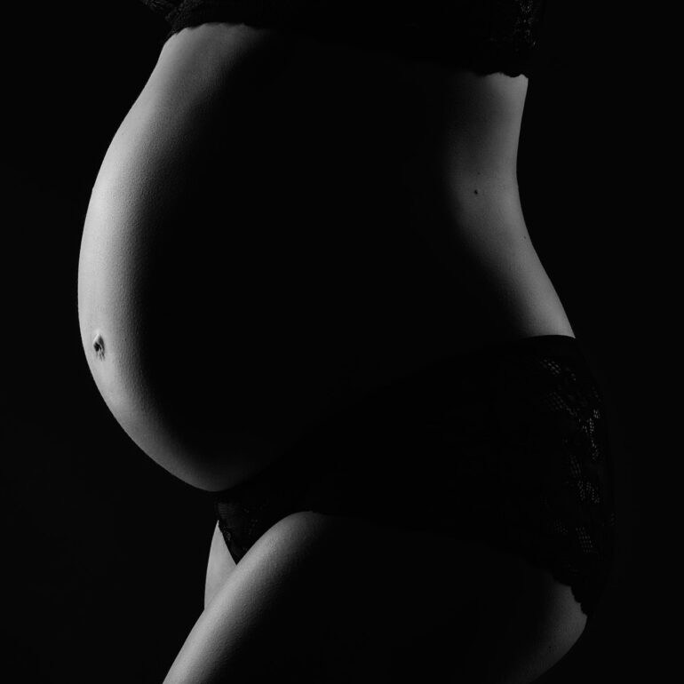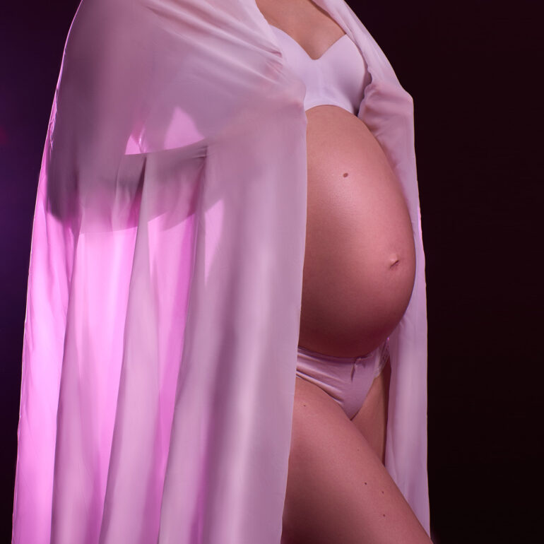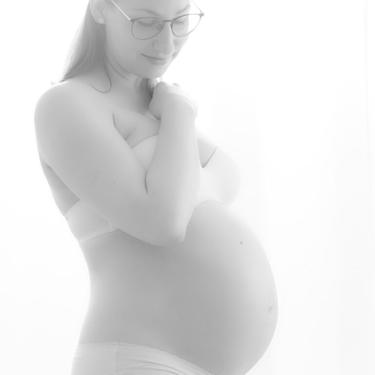 Sara wollte ein minimalistisches Babybauch Shooting machen. Wir haben uns dann für zwei Sets vor schwarzem und weißem Hintergrund entschieden. Die Setups und auch diesen Stil shoote ich auch sehr gerne. Gerade bei Babybauch passt das einfach sehr gut.
